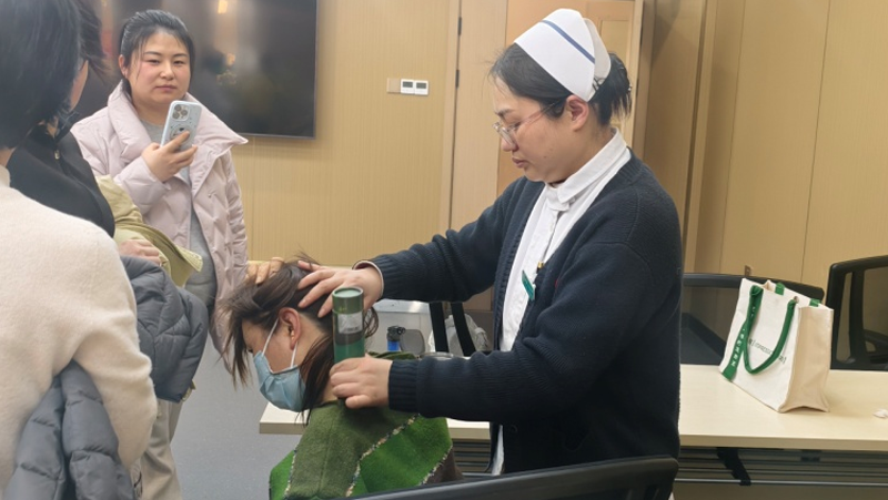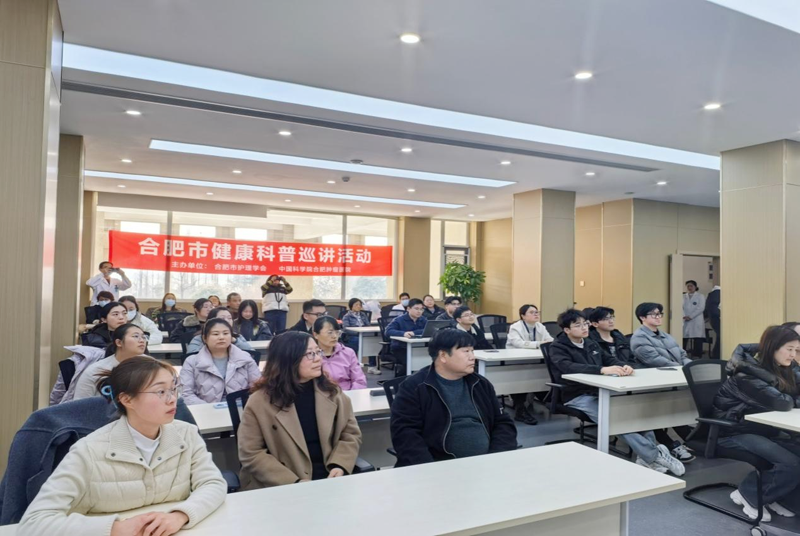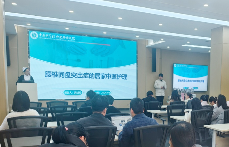 为关爱科研工作者脊柱健康,提升腰椎间盘突出症居家护理能力,中国科学院合肥肿瘤医院护士长周进松带领护理团队于3月9日在安徽光机所二楼报告厅举办“守护脊梁·健康同行”健康科普讲座+中医护理体验活动,现场上百名职工参加。
