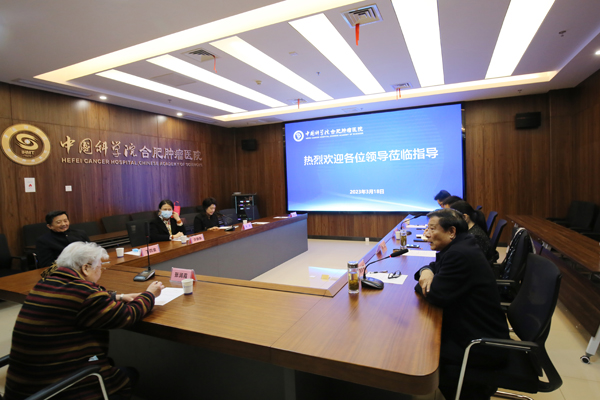 3月18日上午,安徽省原副省长张润霞、省民政厅副厅长许静静、省民政厅原副厅长丁四金等一行,在安徽省癌症康复协会会长朱静的陪同下,到中国科学院合肥肿瘤医院新院区参观调研。医院执行院长高世明、副院长夏莉等院领导接待了张润霞一行。