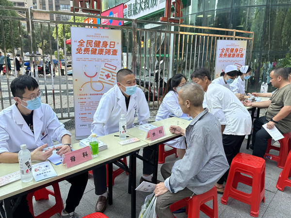 8月18日上午,团队还应邀前往医院附近的红皖家园开展“全民健身日免费健康筛查”活动进小区活动,为广大居民提供内科、外科、骨科的义诊,现场免费测量血糖、血压等,为广大居民普及保健知识。