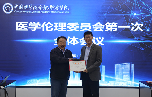 医院副院长曾萍宣读了《关于成立医学伦理委员会的通知》,并宣布医院第一届医学伦理委员会正式成立。王宏志为各委员颁发聘书,并合影留念。