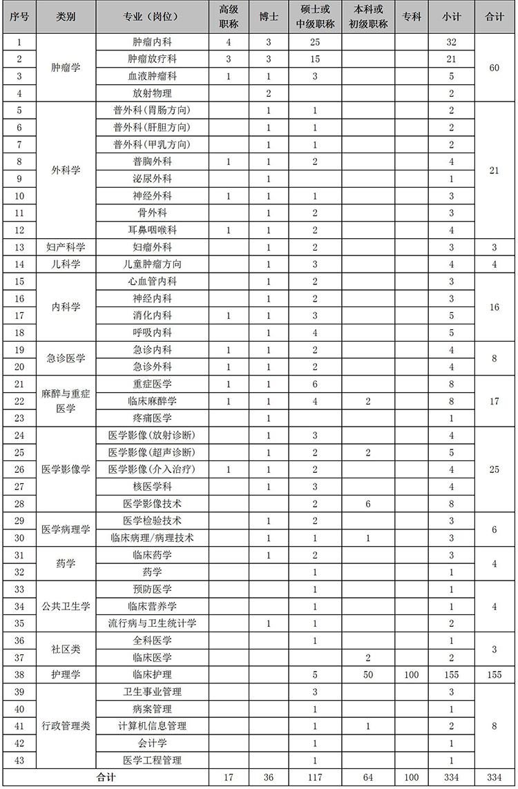 在中科院和安徽省暨合肥市的大力支持下,一所1000张床位规模的新院区即将在2022年内投入使用,现面向全社会公开招聘以下专业技术人才。具体公告如下: